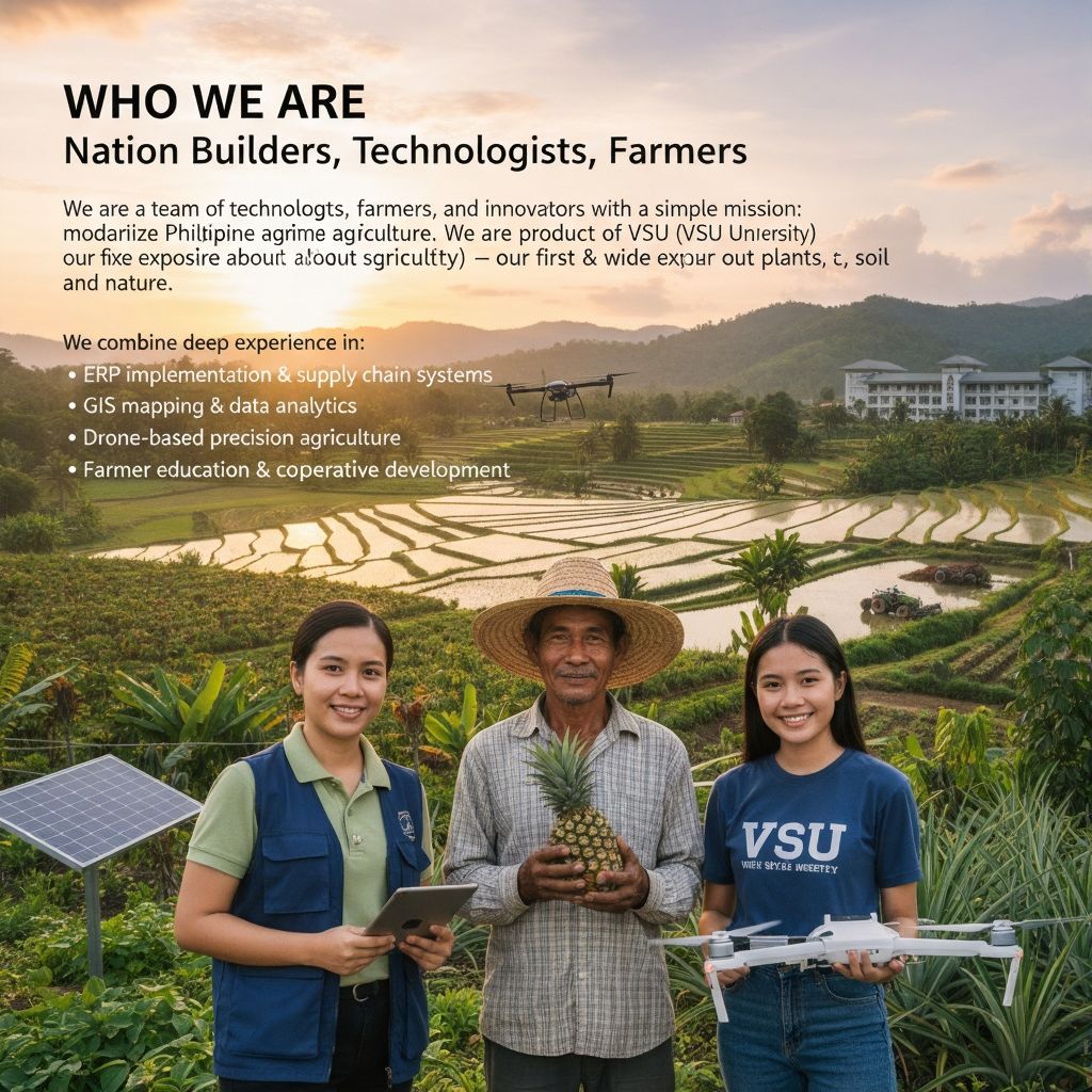 We are a team of technologists, farmers, and innovators with a simple mission: modernize Philippinen agriculture. We are a product of VSU (Visayas State University) – our first & wide exposure about plants, soil and nature.